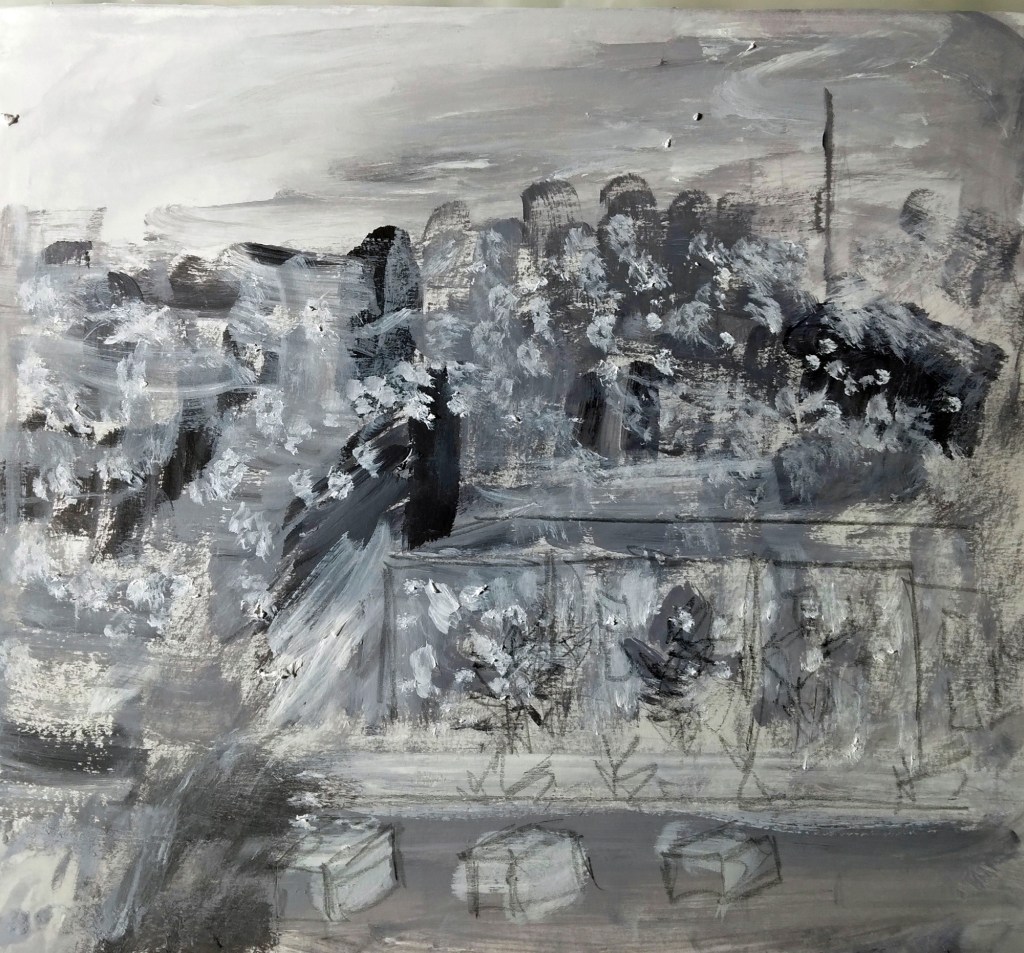 Last weekend the Plastic Club, an historic arts organization in Philadelphia, hosted a drawing session using a website called Window-swap. The purpose of the Window-swap site is to give people glimpses of the views from other peoples’ windows from around the world. Though I am fond of the view from my own window, it was certainly nice to see what was outside of Elsa’s window in the countryside of France and Katarina’s window in Moscow as well as a window from a commuter train in Taipa and several other scenes.