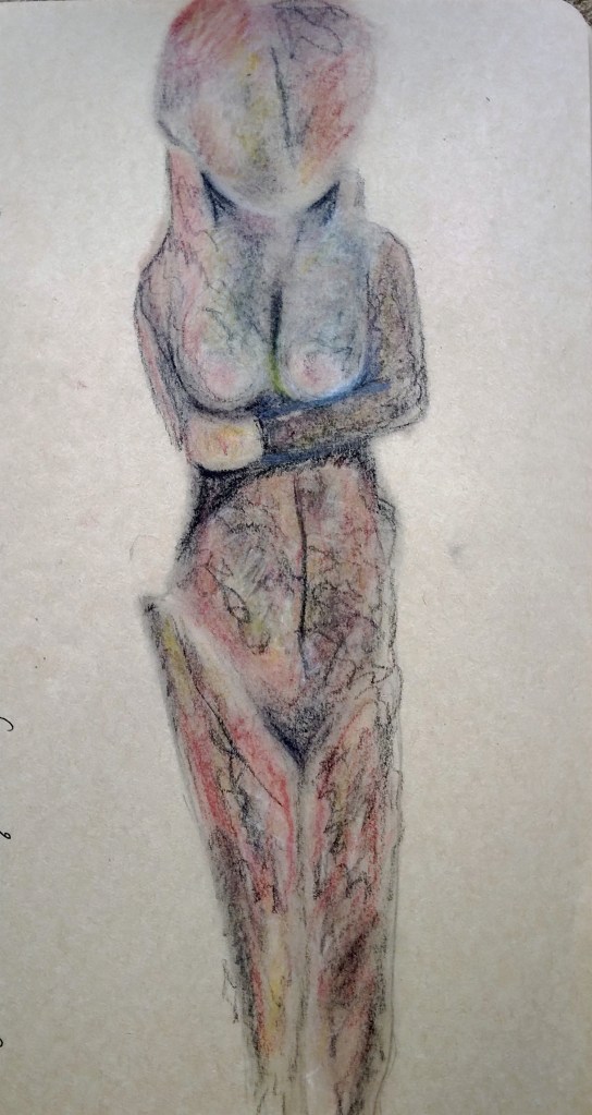 I admit that the first drawing is my favorite so here is a detail view of my favorite part of my favorite drawing – the hands of this figurine.