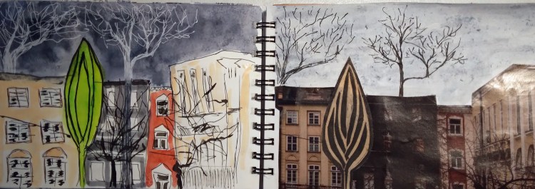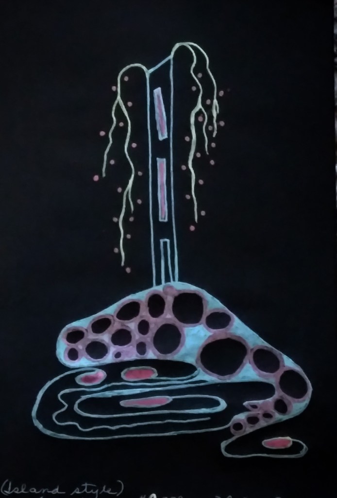 Last month I dedicated lots of time to drawing trees, especially trees with deep cavities where some critter may have taken up residence. Well, I’m not going to be posting those because, frankly, they are nice but not very interesting. Sort of run in the mill everyday tree drawings. But in addition to those I did some make believe trees that also morphed into tree-houses and tree-house-islands. So here they are, starting with the most ‘realistic’. I like that the third one had a tree branch that is antennae like – a standard in most of my work that has houses and buildings.