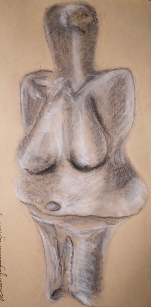 A few months back I posted some drawings I made based on ancient figurines I found online and in the public domain from various museums. You can see that post and the drawings here. Recently, I completed some more drawings from additional figurines. Here they are along with the information on where to view the original. All drawings were done on a brown tones paper with various media, mostly dry but some gouache (opaque watercolor) as well.