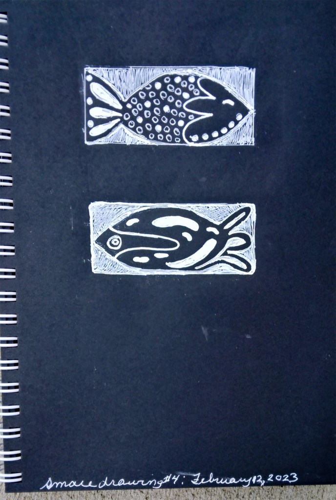 Themed books are sketchbooks I have featured often on this blog. They usually deal with a particular theme regarding subject (such as the Gees Bend Paper Quilts) or strategy (the Black paper sketch book). I have lots of these books going and will be sharing more in the coming weeks. There is a brown paper book, a minimalism book. I have also already posted images from a large (9″ x 12″) heavy paper sketchbook that I use for paintings. Here are some example from that: Link 1 Link 2 Link 3