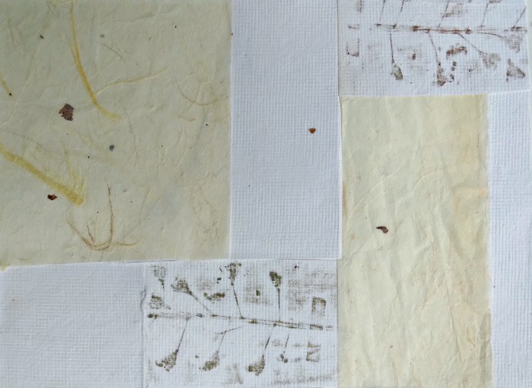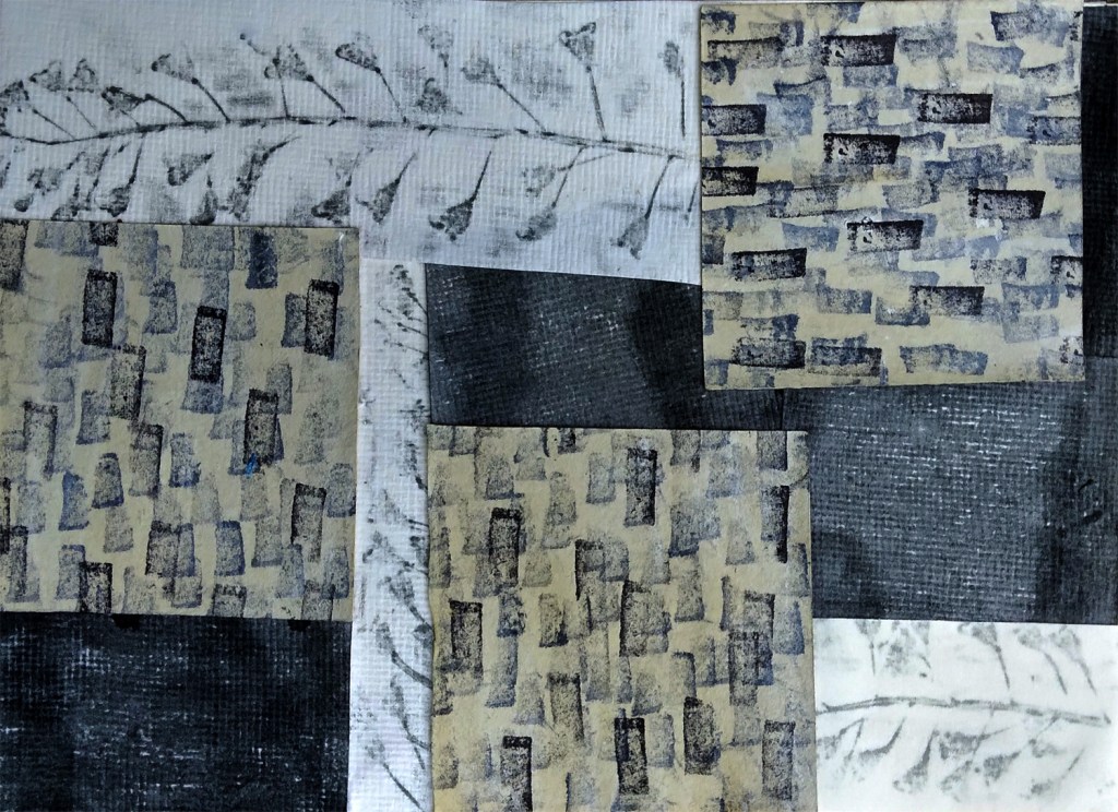 Recently I took a virtual workshop through the National Gallery of Art on collage book covers. The inspiration for the collages were based on the Gees Bend Quilters, a group of quilters from Gees Bend Alabama known for their unique quilting style. While I did not make a book cover, I did make several very small paper collages based on the stylings made so famous by this remarkable group of women. The way in which the Gees Bend quilts are pieced together spoke to me as they are not in the traditional block style quilts with perfect symmetry. My description of their quilts would do them no justice so I encourage you to take a peek for yourself by clicking the link here to get to the exhibition at the National Gallery of Art where you can see, watch videos and read about them. I have been very fortunate to see some of these quilts in person as well.