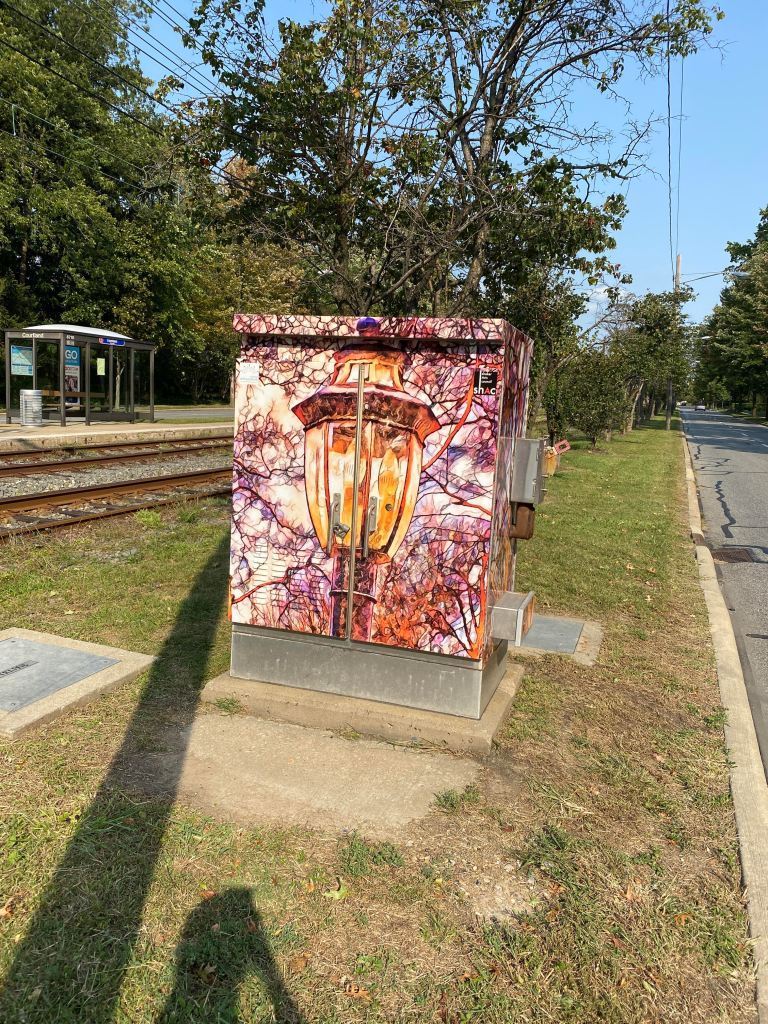 Allison has had two works accepted for public display through the Shaker Arts Council. These are electrical utility boxes that are wrapped with an image designed by a local artist. The images are printed on a plastic material and are permanently adhered to the utility boxes.